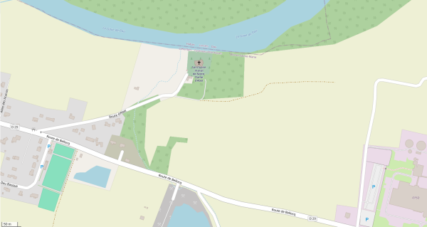 Une balise du nivellement général présente sur la chapelle nous indique qu'elle est à 80 m d'altitude au dessus du niveau de la mer.